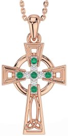 Diamond Emerald Rose Gold Silver Celtic Cross Necklace