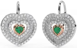 Diamond Emerald Rose Gold Silver Celtic Trinity Knot Heart Dangle Earrings