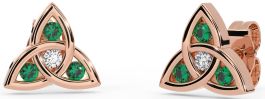 Diamond Emerald Rose Gold Silver Celtic Trinity Knot Stud Earrings