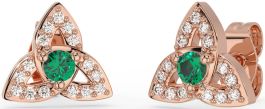 Diamond Emerald Rose Gold Silver Celtic Trinity Knot Stud Earrings