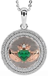 Diamond Emerald Rose Gold Silver Claddagh Celtic Trinity Knot Necklace