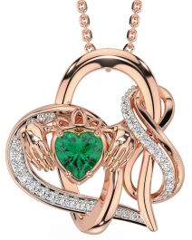 Diamond Emerald Rose Gold Silver Claddagh Infinity Necklace