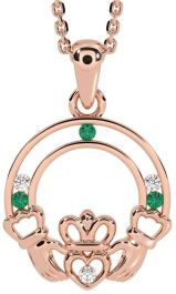 Diamond Emerald Rose Gold Silver Claddagh Necklace