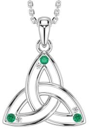 Diamond Emerald Silver Celtic Trinity Knot Necklace