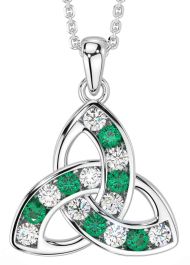 Diamond Emerald Silver Celtic Trinity Knot Necklace