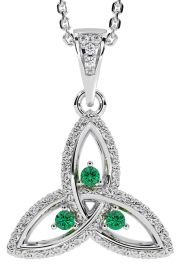 Diamond Emerald Silver Celtic Trinity Knot Necklace