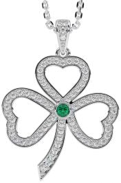Diamond Emerald Silver Shamrock Necklace