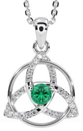 Diamond Emerald White Gold Celtic Trinity Knot Necklace