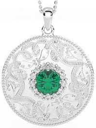 Diamond Emerald White Gold Celtic Warrior Necklace