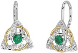 Diamond Emerald White Yellow Gold Celtic Trinity Knot Stud Earrings