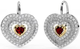 Diamond Garnet Gold Silver Celtic Trinity Knot Heart Dangle Earrings