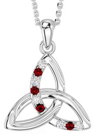 Diamond Garnet Silver Celtic Trinity Knot Necklace