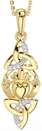 Diamond Gold Claddagh Celtic Trinity Knot Necklace