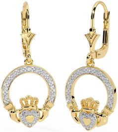 These Claddagh Dangle Earrings comes in Gold and Silver set with a choice of Diamonds and Gemstones. The current selection is made from . Set with . . . .