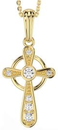 Diamond Gold Silver Celtic Cross Necklace