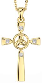 Diamond Gold Silver Celtic Cross Trinity Knot Necklace