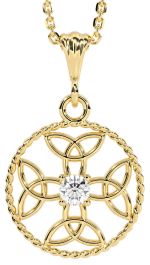Diamond Gold Silver Celtic Cross Trinity Knot Necklace