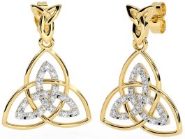 Diamond Gold Silver Celtic Trinity Knot Dangle Earrings