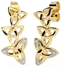 Diamond Gold Silver Celtic Trinity Knot Dangle Earrings