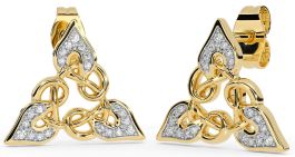 Diamond Gold Silver Celtic Trinity Knot Stud Earrings