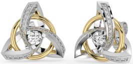 Diamond Gold Silver Celtic Trinity Knot Stud Earrings