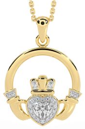 Diamond Gold Silver Claddagh Necklace