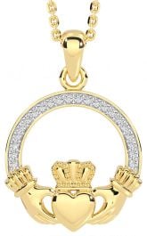 Diamond Gold Silver Claddagh Necklace
