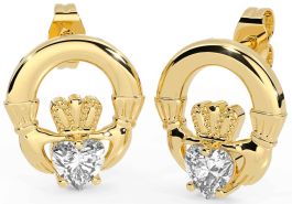 Diamond Gold Silver Claddagh Stud Earrings