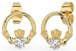 Diamond Gold Silver Claddagh Stud Earrings
