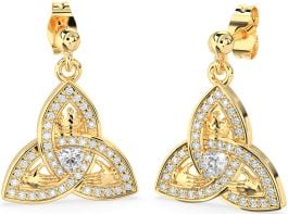 Diamond Gold Silver Claddagh Trinity Knot Dangle Earrings