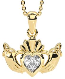 Diamond Gold Silver Claddagh Trinity Knot Necklace