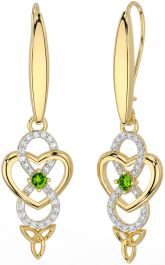 Diamond Peridot Gold Infinity Celtic Trinity Knot Dangle Earrings