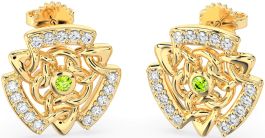 Diamond Peridot Gold Silver Celtic Stud Earrings