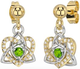 Diamond Peridot Gold Silver Celtic Trinity Knot Heart Dangle Earrings