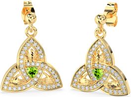 Diamond Peridot Gold Silver Claddagh Trinity Knot Dangle Earrings