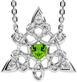 Diamond Peridot Silver Celtic Trinity Knot Necklace