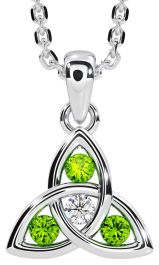 Diamond Peridot Silver Celtic Trinity Knot Necklace