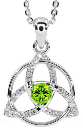 Diamond Peridot Silver Celtic Trinity Knot Necklace