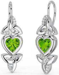 Diamond Peridot White Gold Celtic Trinity Knot Heart Dangle Earrings