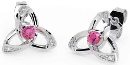 Diamond Pink Tourmaline Silver Celtic Trinity Knot Stud Earrings