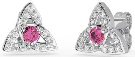 Diamond Pink Tourmaline Silver Celtic Trinity Knot Stud Earrings
