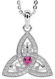Diamond Pink Tourmaline White Gold Claddagh Trinity knot Necklace