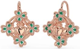Diamond Rose Gold Claddagh Shamrock Dangle Earrings