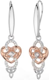Diamond Rose Gold Silver Celtic Claddagh Infinity Trinity Knot Dangle Earrings