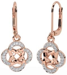 Diamond Rose Gold Silver Celtic Dangle Earrings