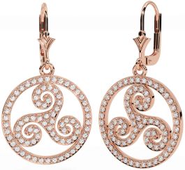Diamond Rose Gold Silver Celtic Dangle Earrings
