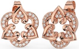 Diamond Rose Gold Silver Celtic Heart Stud Earrings