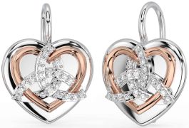 Diamond Rose Gold Silver Celtic Trinity Knot Heart Dangle Earrings