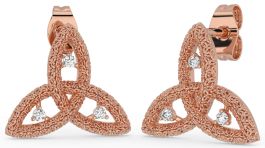 Diamond Rose Gold Silver Celtic Trinity Knot Stud Earrings