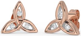 Diamond Rose Gold Silver Celtic Trinity Knot Stud Earrings